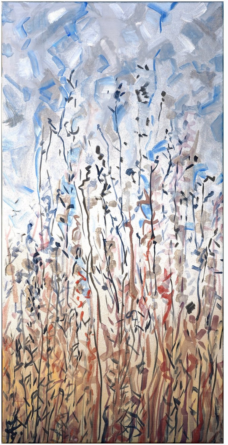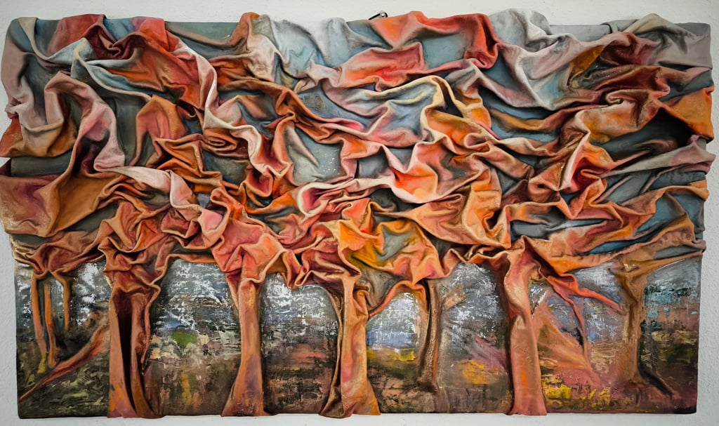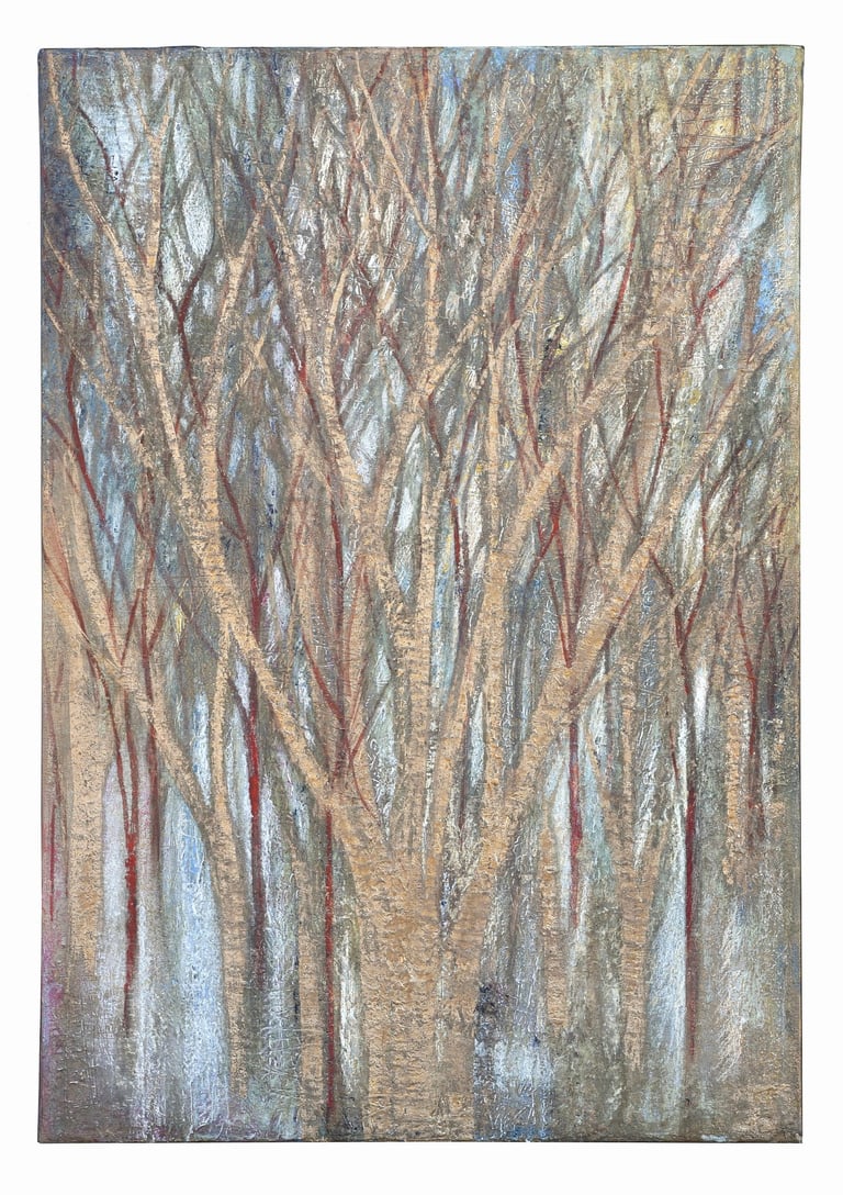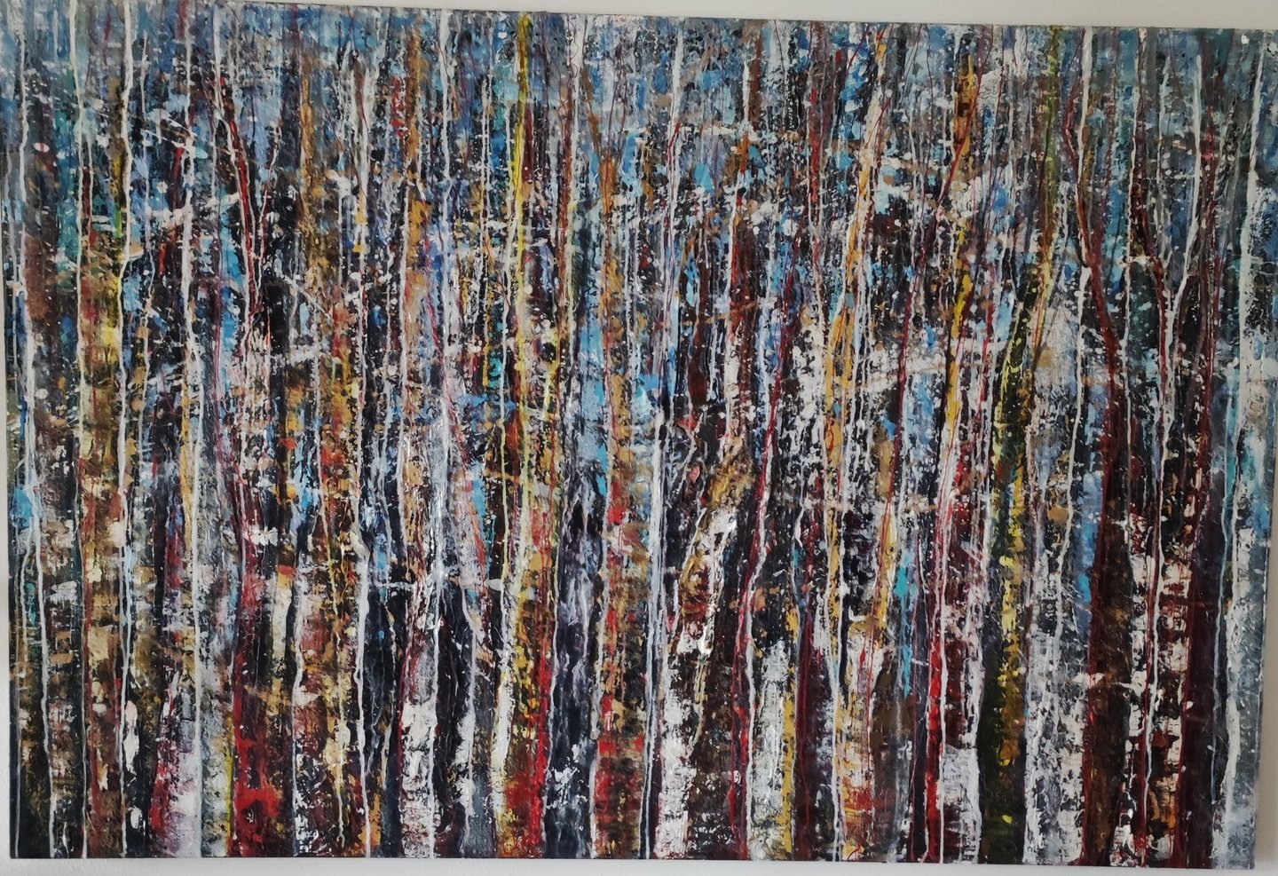Nel primo gruppo di opere cerco di interpretare un dialogo tra figurativo e astratto. I gruppi di alberi si alternano in diverse fasi della giornata e nelle variegate stagioni. Le composizioni vivono di una vibrante tridimensionalità, favorendo l’effetto del chiaroscuro e dei giochi di luce.