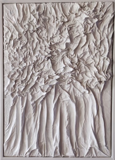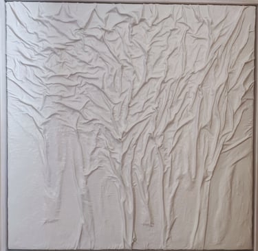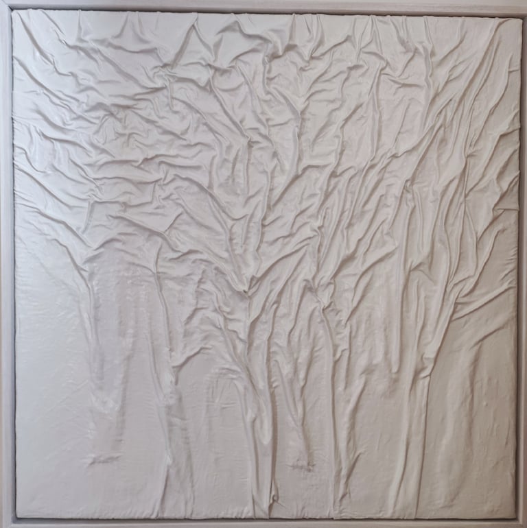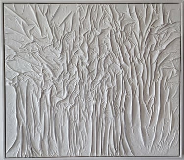 In alcune opere, il bianco diventa l’unico colore, reso cangiante dalla dinamicità della luce che lo attraversa, creando un'atmosfera quasi eterea, dove il rimando alla natura invita lo spettatore a perdersi in un mondo di riflessi e ombre danzanti.