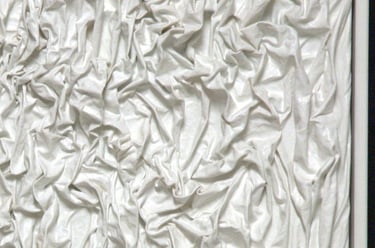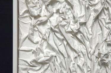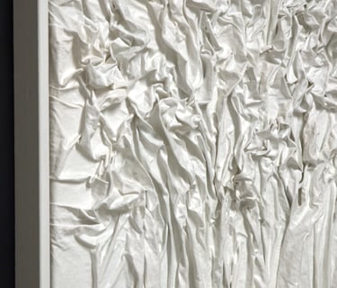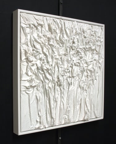 Quest'opera è stata realizzata con un panno di cotone imbevuto in una miscela di stucco e colla vinilica, poi lavorato e modellato sulla tela, infine dipinto a più strati con smalto bianco. Il riferimento visivo è proprio il BIANCOSPINO o CRATAEGUS, che offre forme sinuose, armoniose ma a tratti irregolari.