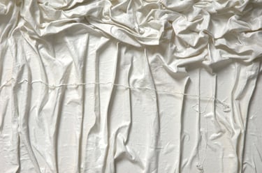 Il mio lavoro esplora il dialogo tra materia, memoria e luce, trasformando tessuti e sostanze umili in superfici che conservano tracce del tempo e della presenza umana. Il paesaggio che emerge non è un luogo fisico, ma un territorio interiore, sospeso tra silenzio, spiritualità e ricordo.