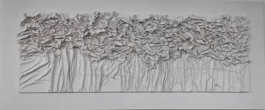 In alcune opere, il bianco diventa l’unico colore, reso cangiante dalla dinamicità della luce che lo attraversa, creando un'atmosfera quasi eterea, dove il rimando alla natura invita lo spettatore a perdersi in un mondo di riflessi e ombre danzanti.