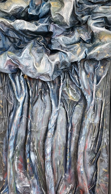 THE GOLDEN BRANCH This work is distinguished by the technique used. The canvas, prepared with a combination of stucco and vinyl glue, offers a unique base that enhances the applied colors. After a layer of different shades, I used the "grattage" technique to bring out the light, creating a fascinating play between shadow and brightness. This methodology not only enriches the work from a visual point of view, but also invites the viewer to explore the depth and nuances of the colors, transmitting a sense of dynamism and liveliness.